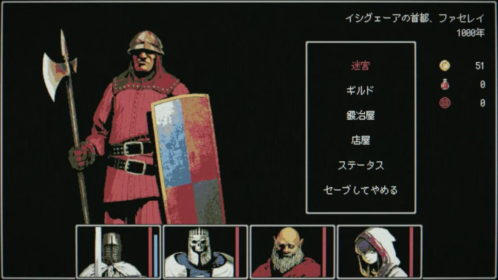 以前感想を書いた「Demon Lord Reincarnation」を作った人たちの作品です。レトロDRPGがフィーチャーされている点は共通ですが、システムはよりミニマルなつくりになっています。