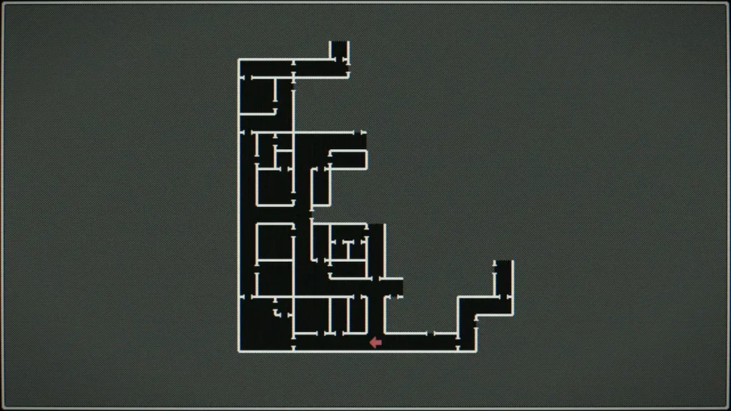 今作のグラフィックもウィザードリィ風です。前作はモノトーンでしたが、カラーになりました。ただ、スクリーン全体にはディザっぽいフィルタが掛かってているのか、画像は滲んだような見た目をしています。これは、いわゆる昔のブラウン管ディスプレイで映したような画質を再現しているのだと思います。懐かしいですね。BGMは環境音系です。