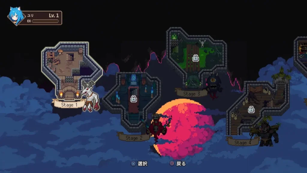 ステージは全7ステージと、エンドコンテンツ用の無限モード(InfinityMode)があります。通常のステージでは、次々と出現する敵を倒しながら7Wave目で出現するボスを倒せばクリアとなり、次のステージが解放されます。ステージセレクト制なので、クリアしたステージのリプレイも可能です。